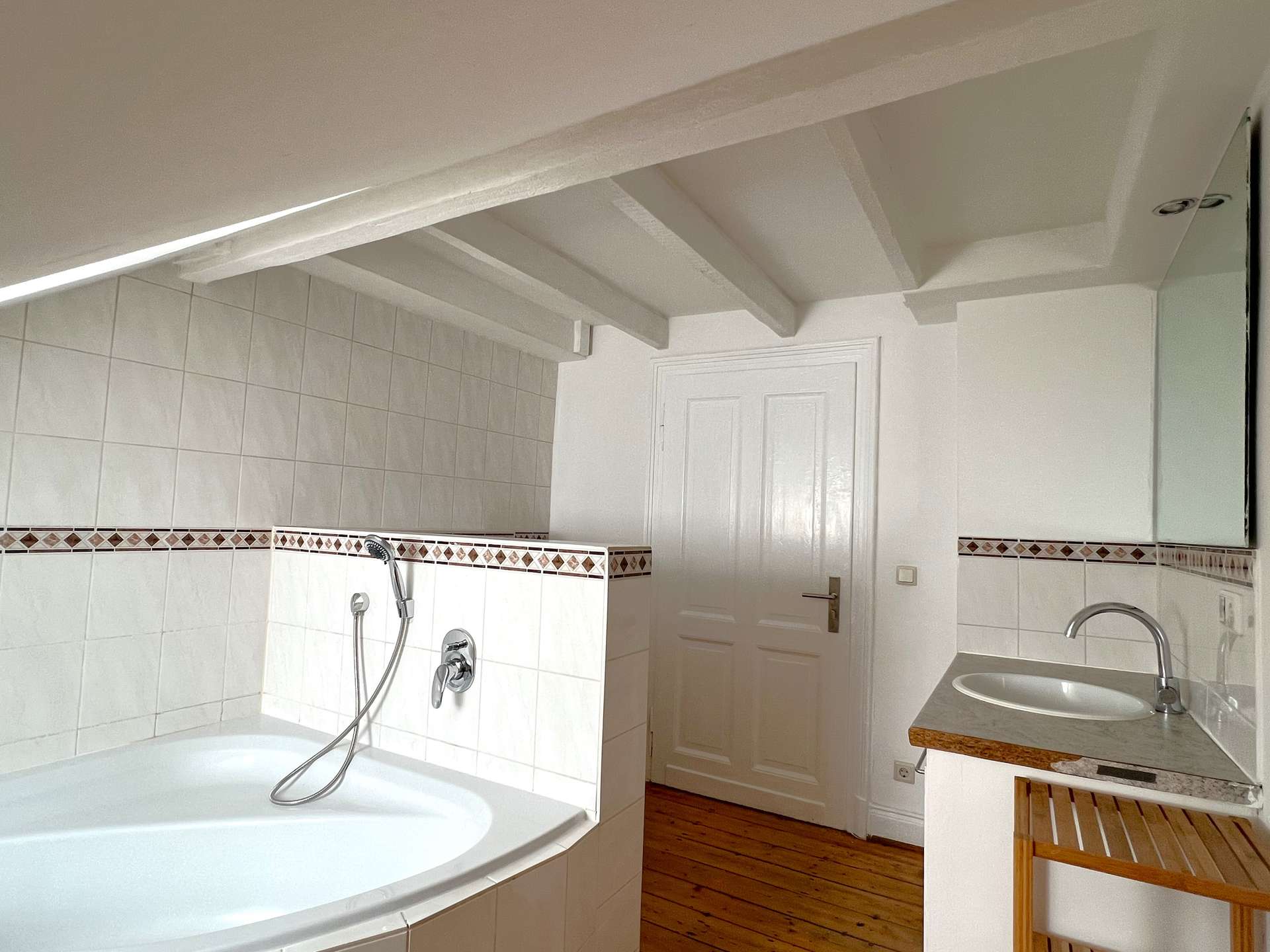 Die großzügige Küche ist umfangreich ausgestattet mit hochwertigen Elektrogeräten und sämtlichen Utensilien, sodass Sie sofort loskochen können. Ein modernes Badezimmer mit Badewanne sowie ein separates Gäste-WC runden den Komfort ab. Besonders praktisch: Die Wohnung erstreckt sich über zwei Etagen und schafft so ein einzigartiges Raumgefühl.